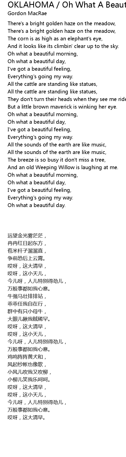 Oh what a beautiful morning, |