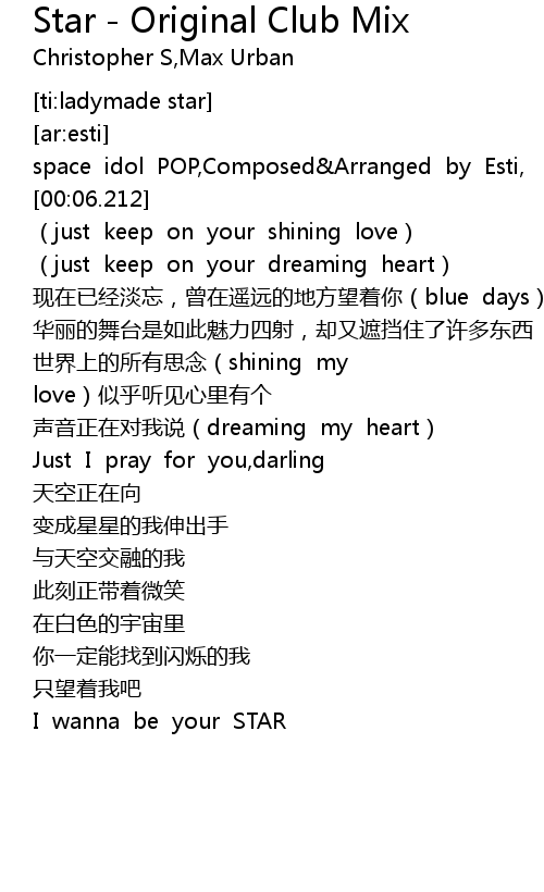 | [00:03.353] | space idol POP,Composed&Arranged by Esti, |