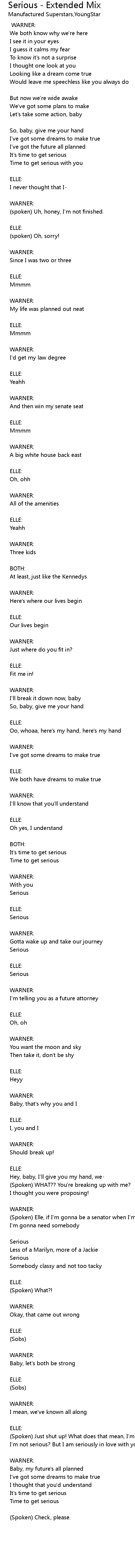(Spoken) Elle, if I'm gonna be a senator when I'm thirty,