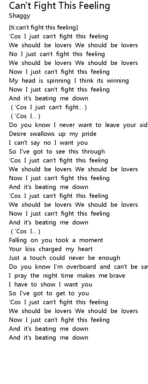 | [03:11.531] | 'Cos I just can't fight this feeling |