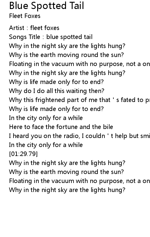 | [00:04.96] | Songs Title: blue spotted tail |