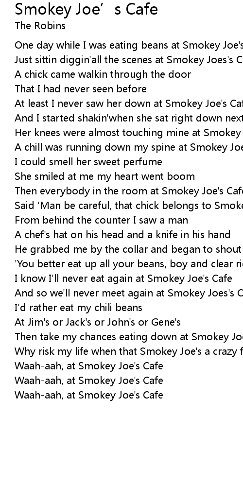 Then take my chances eating down at Smokey Joe's Cafe |