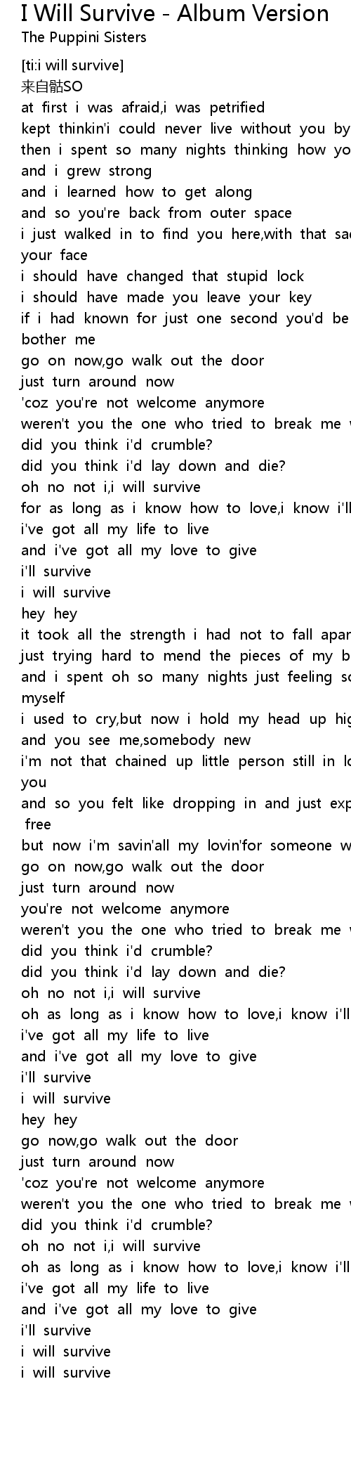 | [02:17.234] | oh no not i,i will survive |
