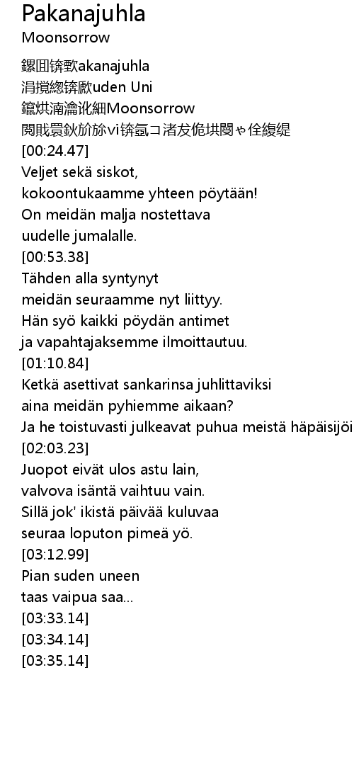 | [00:08.00] | cuān hōng nǎn yuè é xì Moonsorrow |