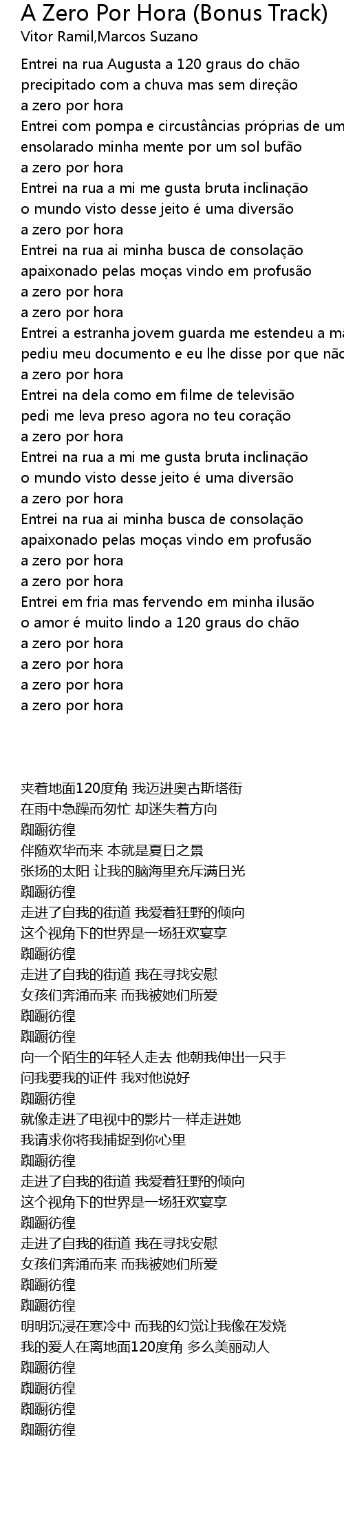 | Song | A Zero Por Hora (Bonus Track) |