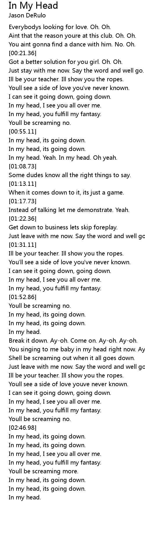 You singing to me baby in my head right now. Ay-oh. Ay-oh. Come on. |