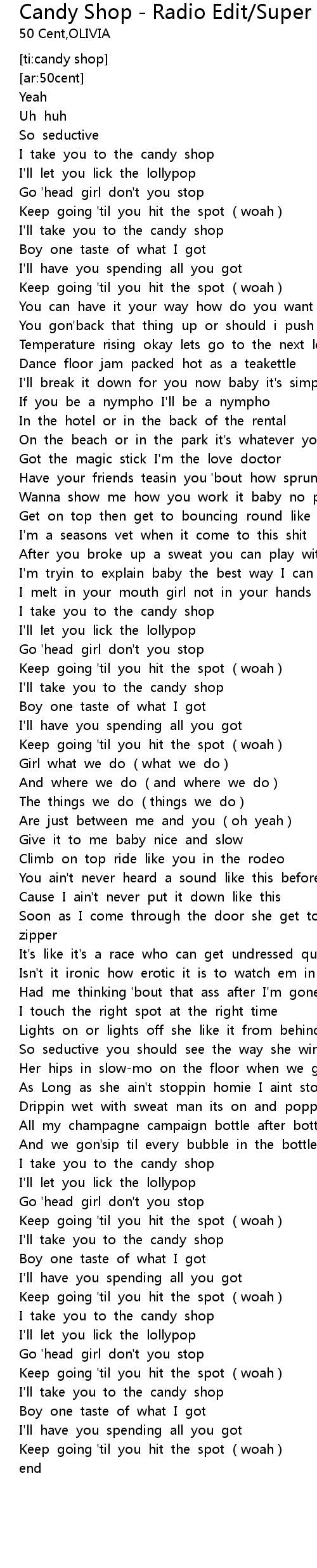 | [02:47.21] | Keep going ' til you hit the spot woah |