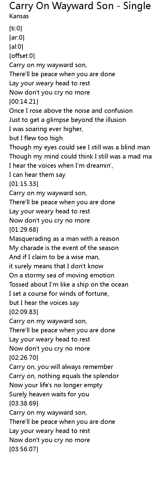 Carry on my wayward son, |