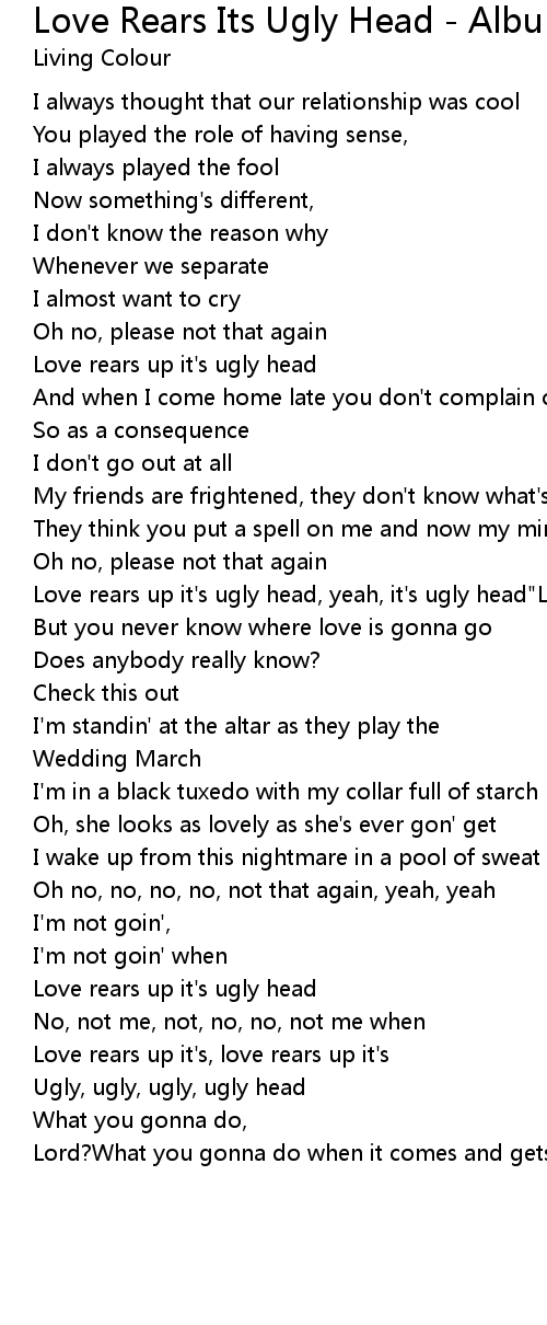 Love rears up it's ugly head, yeah, it's ugly head"Love's not so bad," they say |