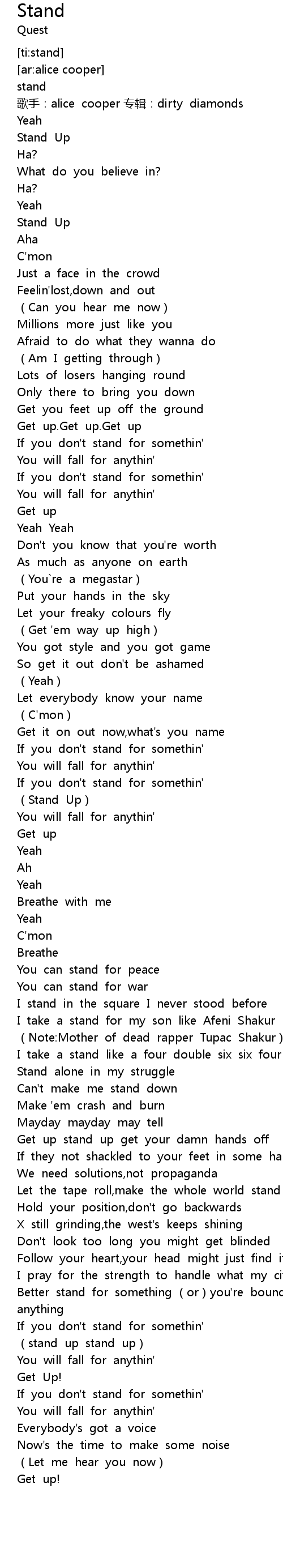 | [02:06.78] | Stand Up |