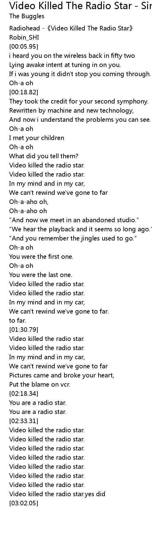 | [00:00.64] | Radiohead -《Video Killed The Radio Star》 |