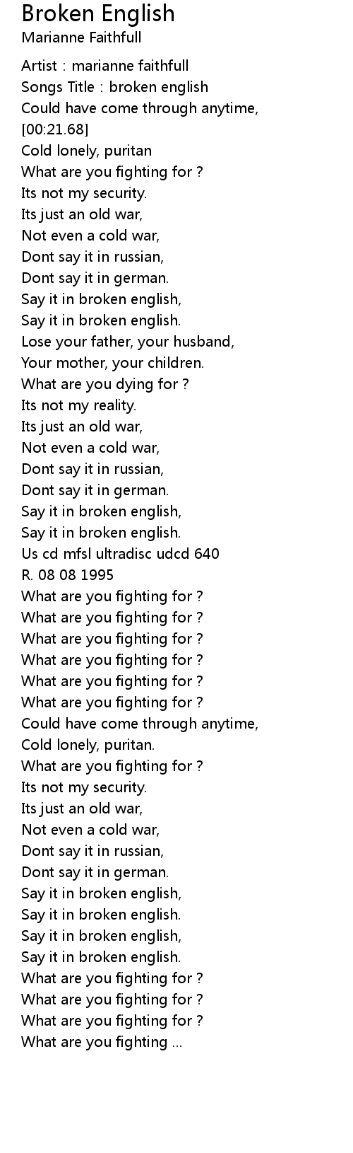 | [00:04.59] | Songs Title: broken english |