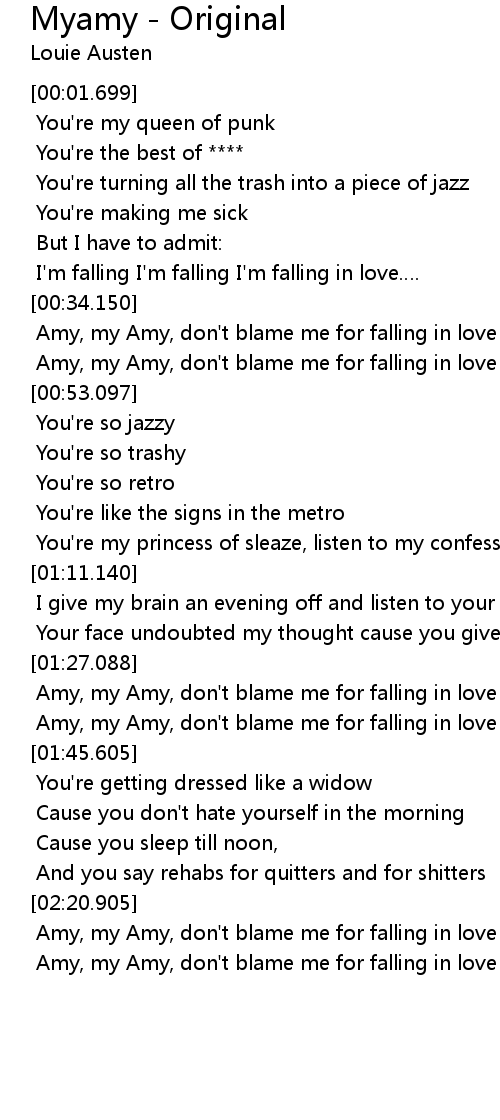 | [00:36.700] | Amy, my Amy, don't blame me for falling in love |