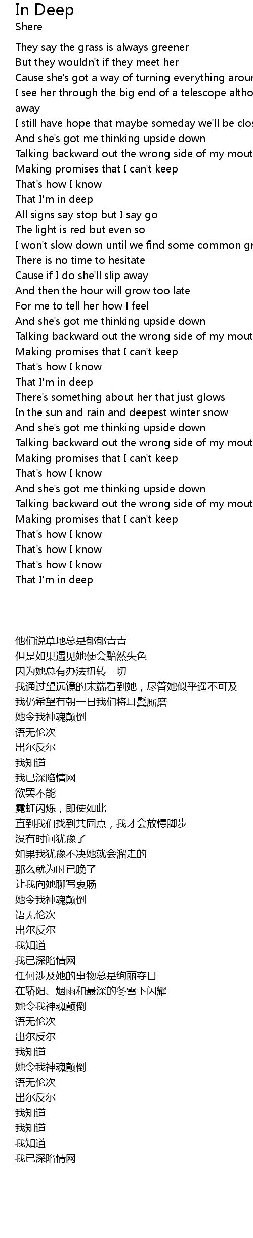 | [00:51.24] | That I'm in deep |