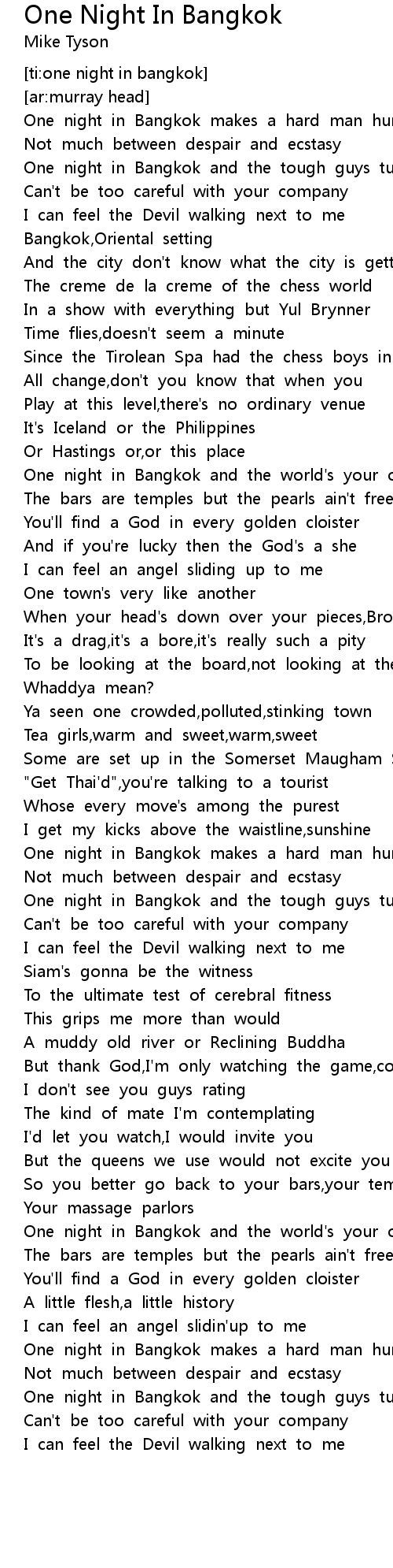 One Night In Bangkok Lyrics