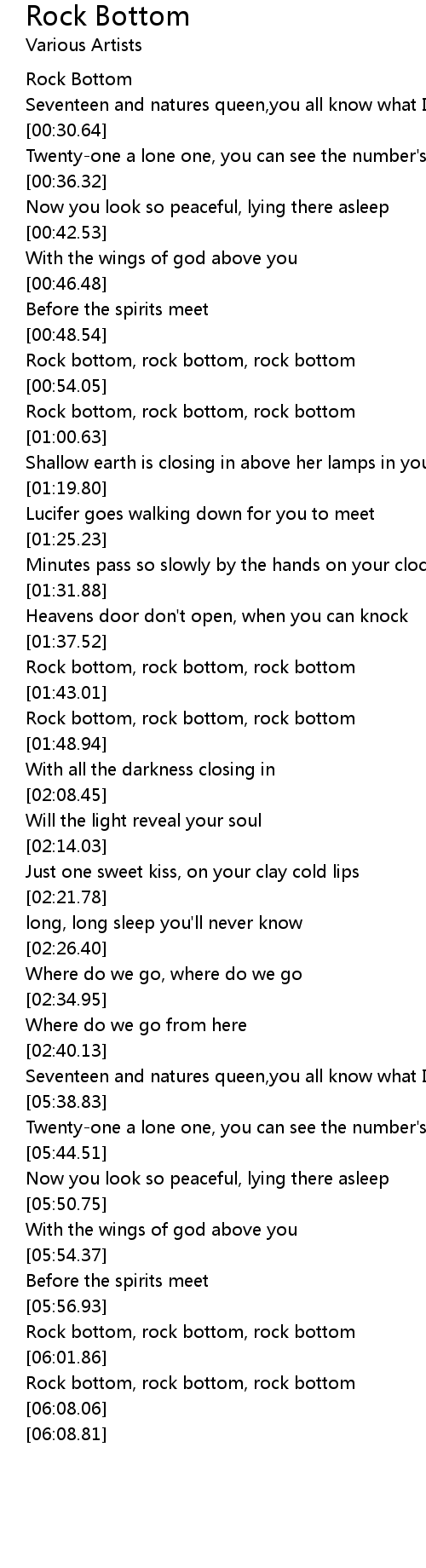 Rock bottom, rock bottom, rock bottom |