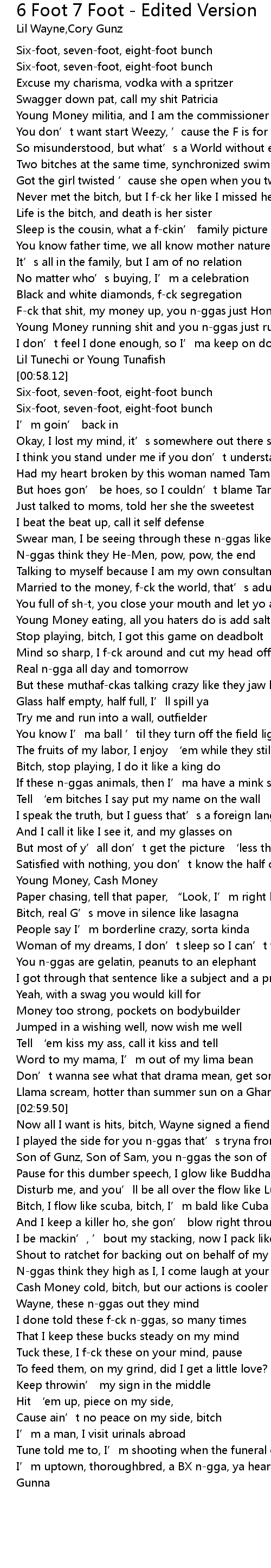 | [00:06.43] | Six-foot, seven-foot, eight-foot bunch |