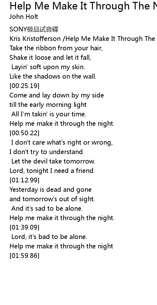 | [00:46.20] | Help me make it through the night. |