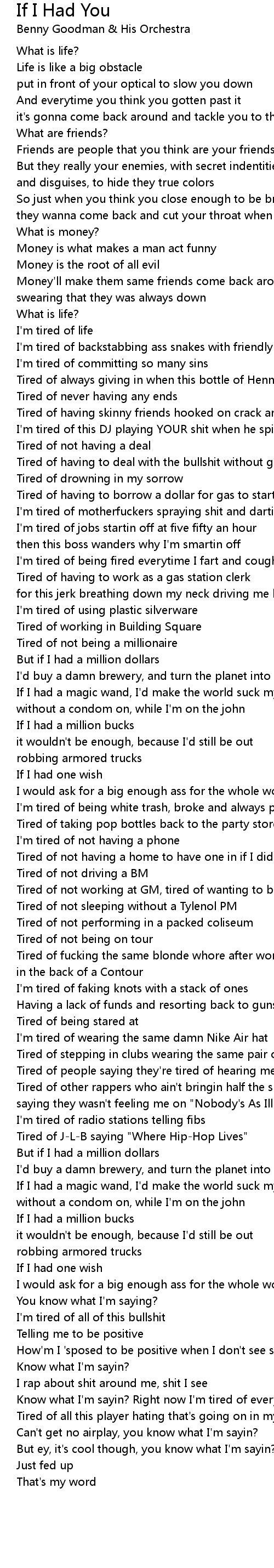 saying they wasn't feeling me on "Nobody's As Ill As Me" |