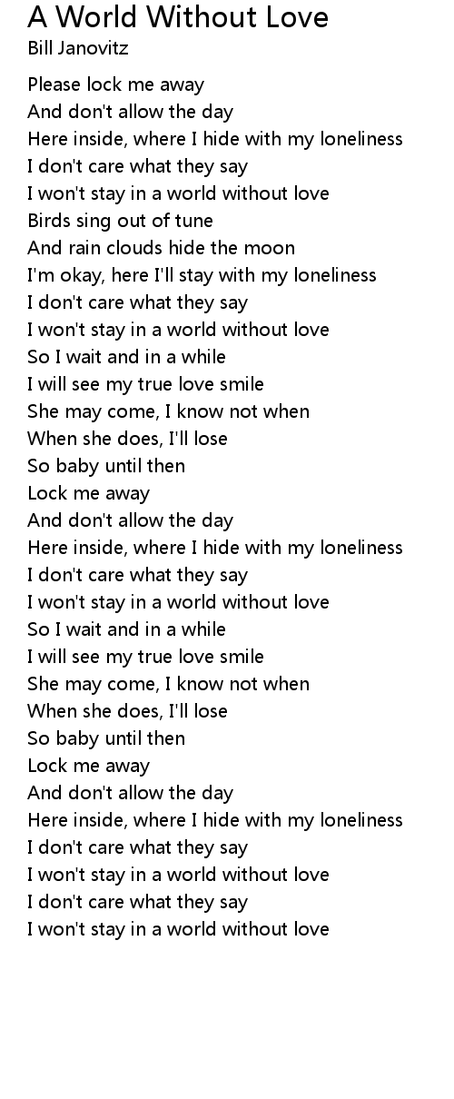 I won't stay in a world without love |