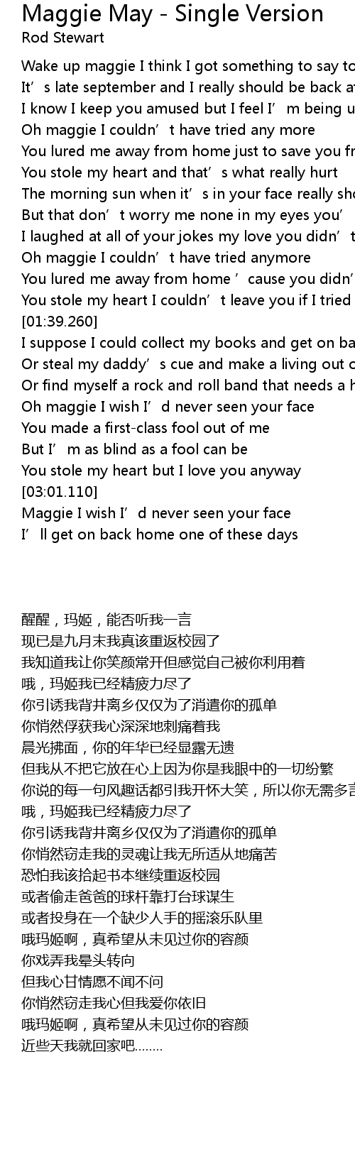 | [02:14.220] | Oh maggie I wish I' d never seen your face |