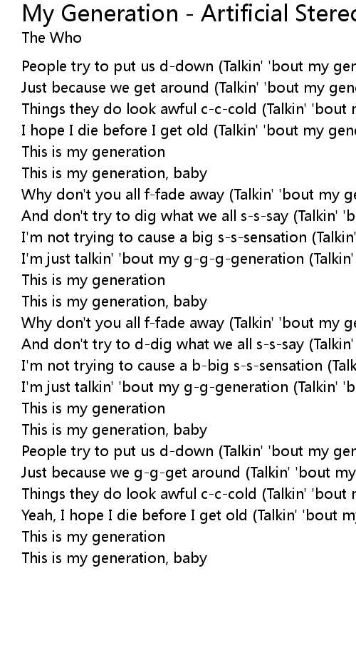 And don't try to d-dig what we all s-s-say (Talkin' 'bout my generation) |