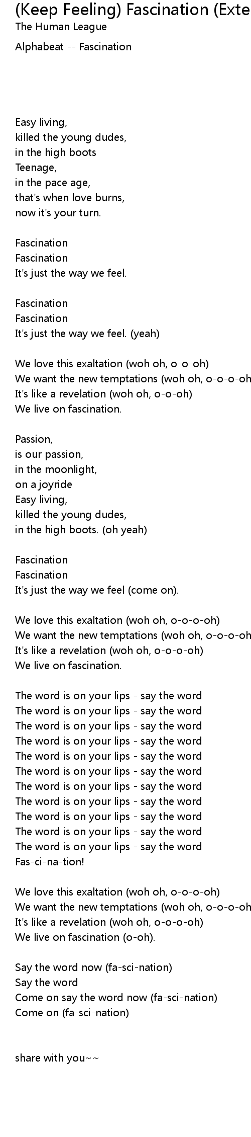 (Keep Feeling) Fascination (Extended Version) Lyrics