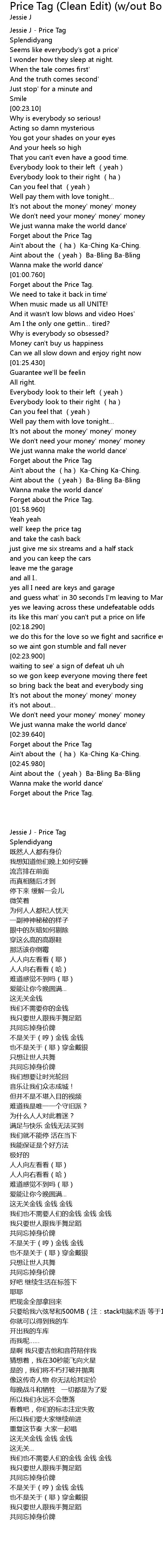 | [00:01.520] | Jessie J - Price Tag |
