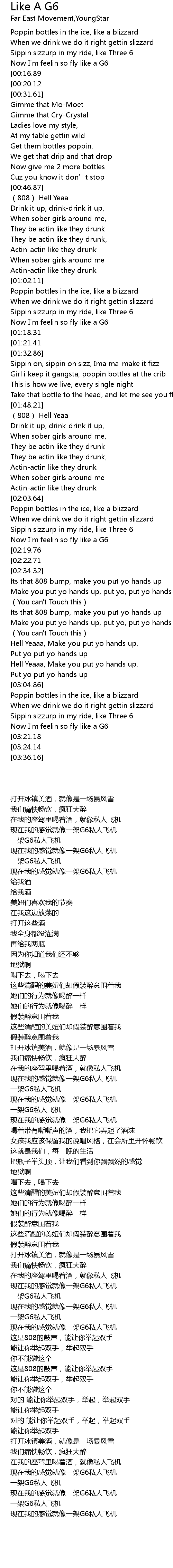 | [00:24.56][00:16.89] | Like a G6, Like a G6 |
