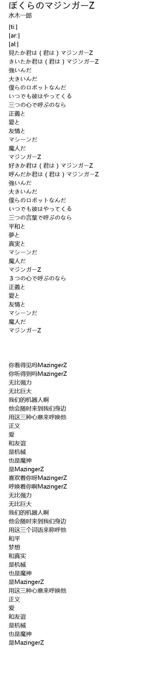 きいたか君は(君は)マジンガーZ |