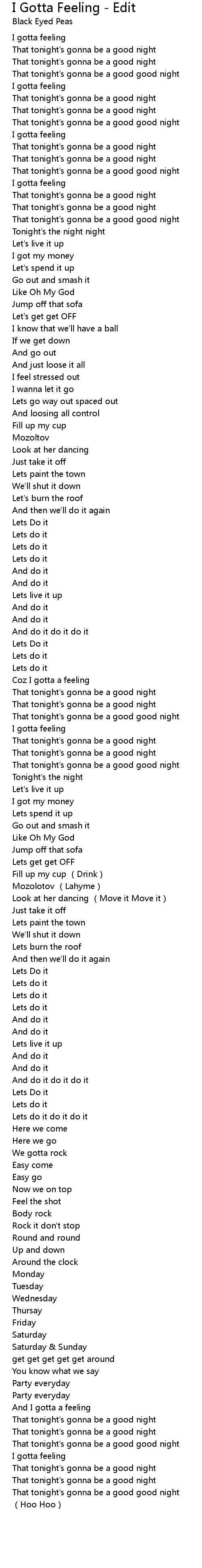 | [02:44.630] | I gotta feeling |