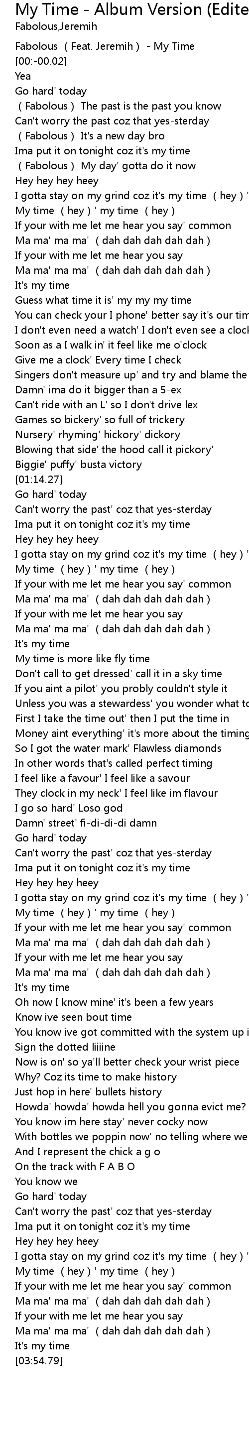 | [00:-07.52] | Fabolous (Feat. Jeremih) - My Time |