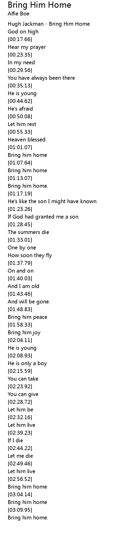 [00:01.12] Hugh Jackman - Bring Him Home