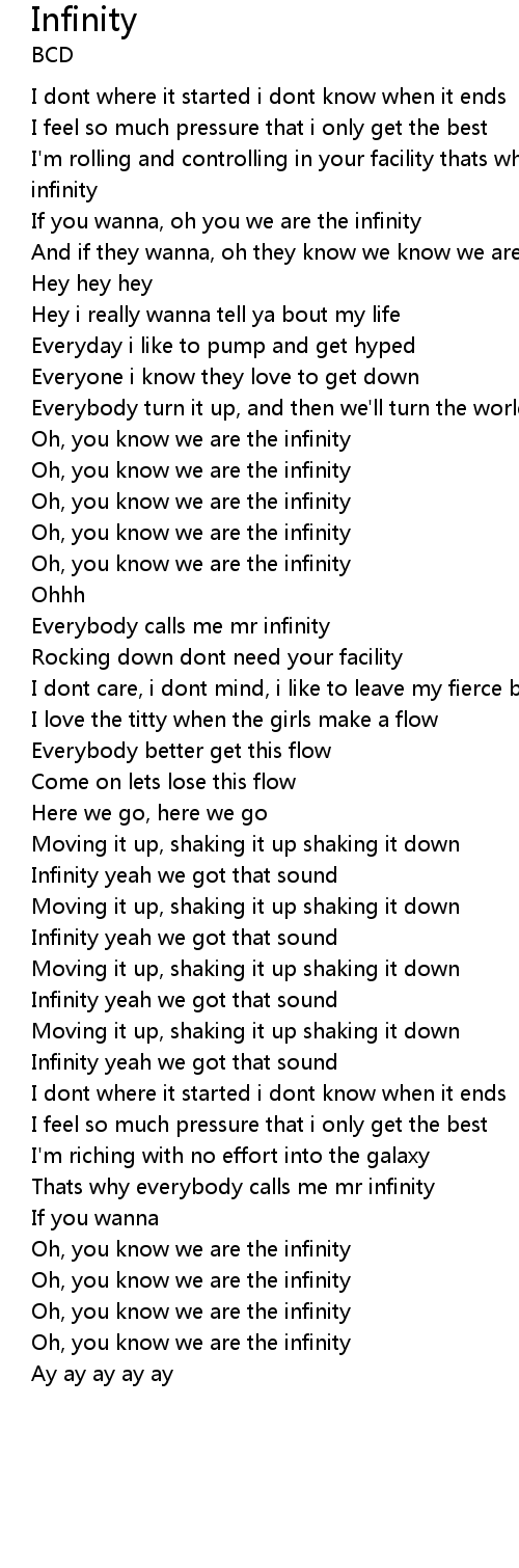Everybody calls me mr infinity |