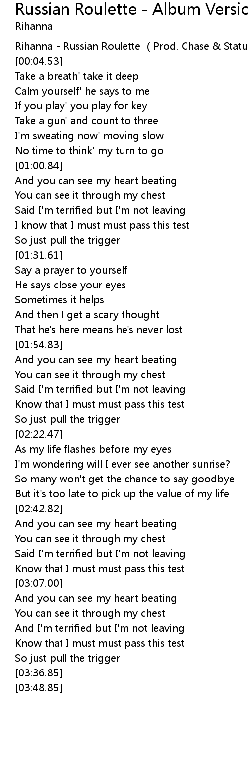 | [00:00.52] | Rihanna - Russian Roulette (Prod. Chase & Status) |