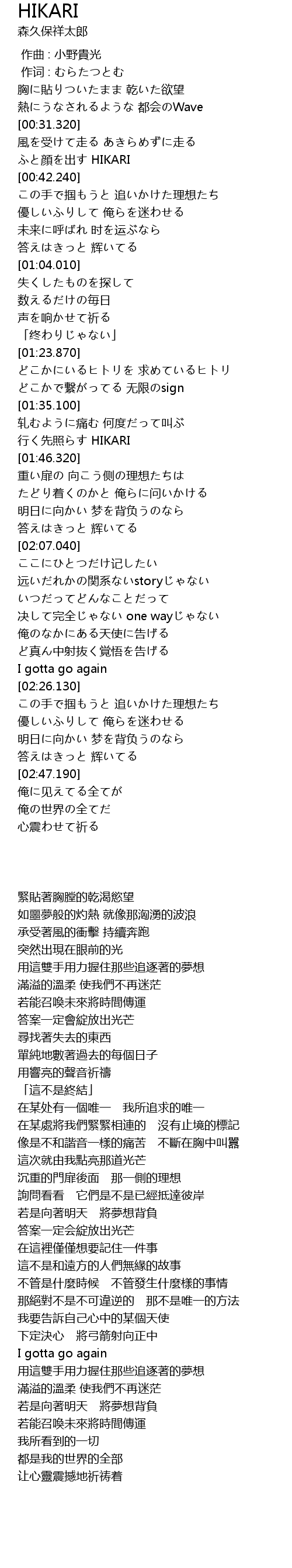 | [01:41.610] | xíng xiān zhào HIKARI |