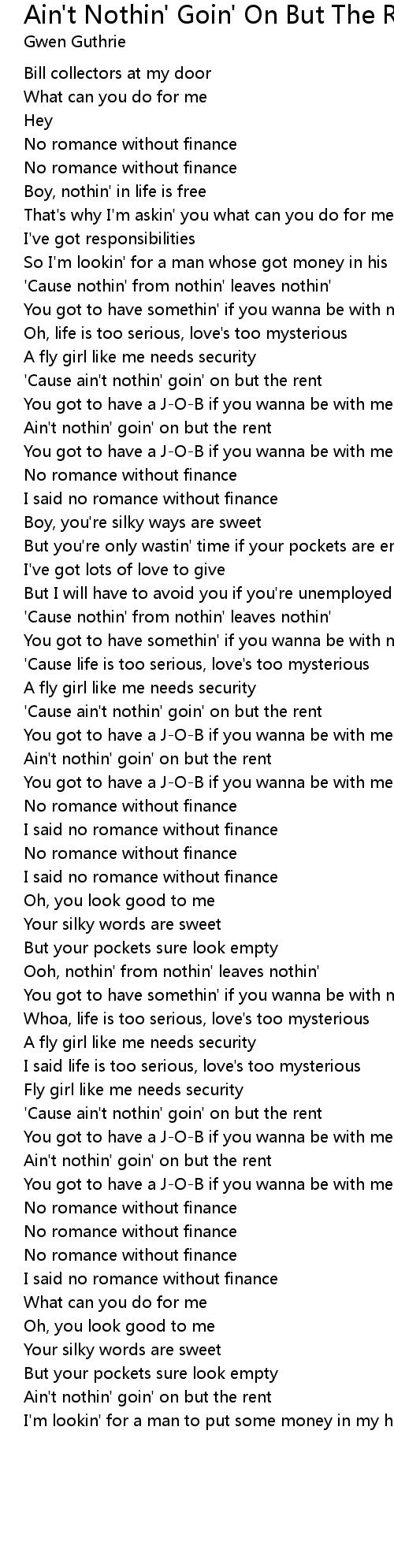 Ain't nothin' goin' on but the rent |