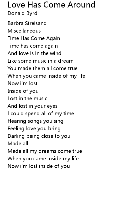 | Song | Love Has Come Around |