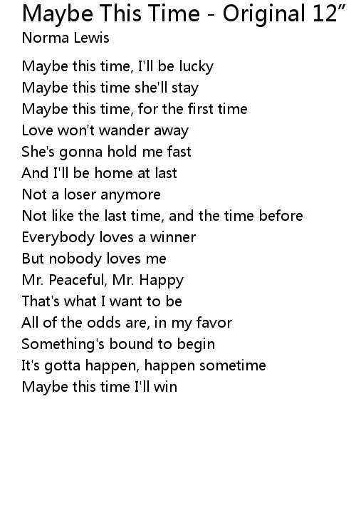 | Song | Maybe This Time - Original 12” Mix |