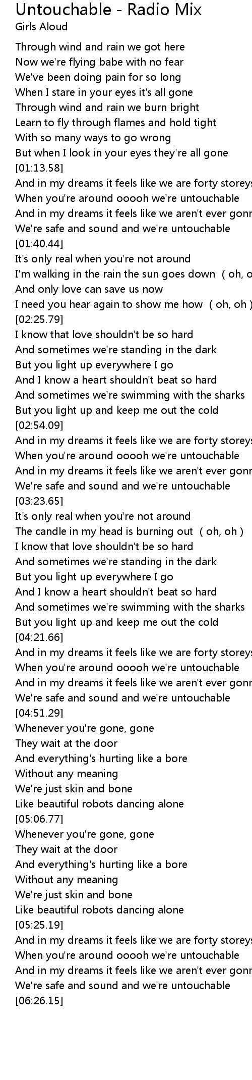 | [01:21.18] | When you're around ooooh we're untouchable |