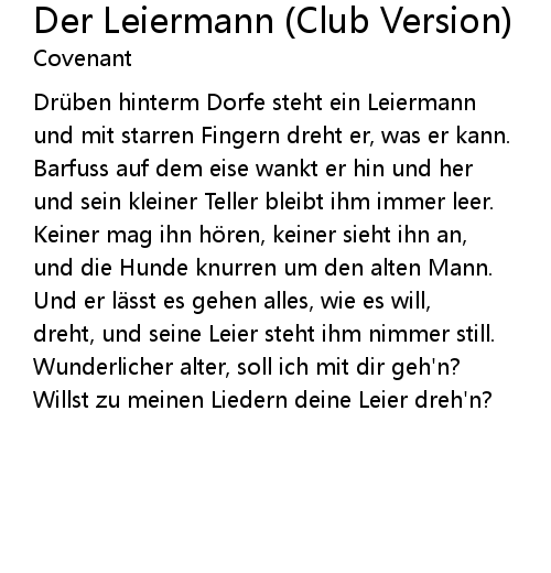 | Drü ben hinterm Dorfe steht ein Leiermann | |
