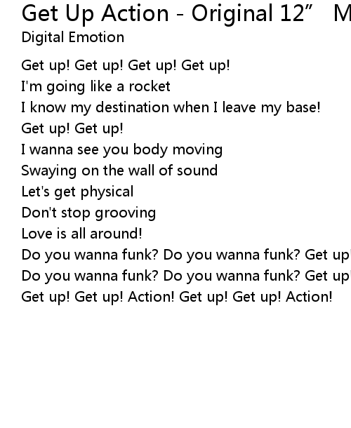 | Song | Get Up Action - Original 12” Mix |