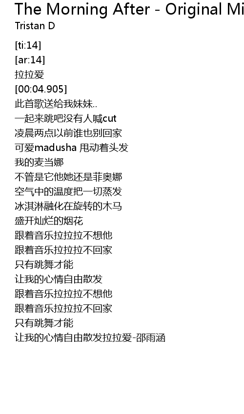 | [00:25.582] | 一起来跳吧没有人喊cut |