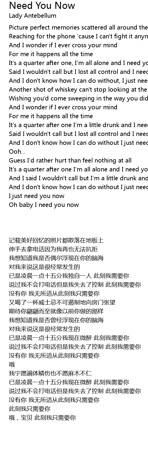 [00:57.389] Said I wouldn't call but I lost all control and I need you now