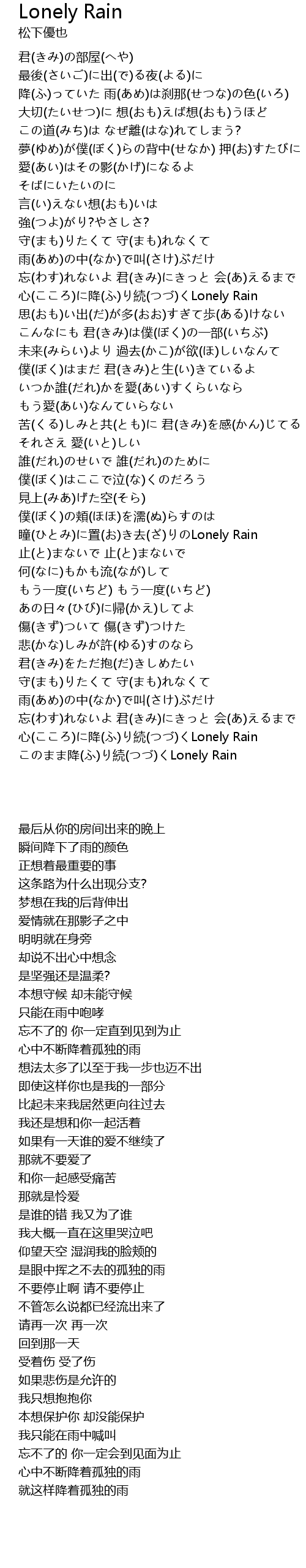 | [01:50.14] | 心(こころ)に降(ふ)り続(つづ)くLonely Rain |