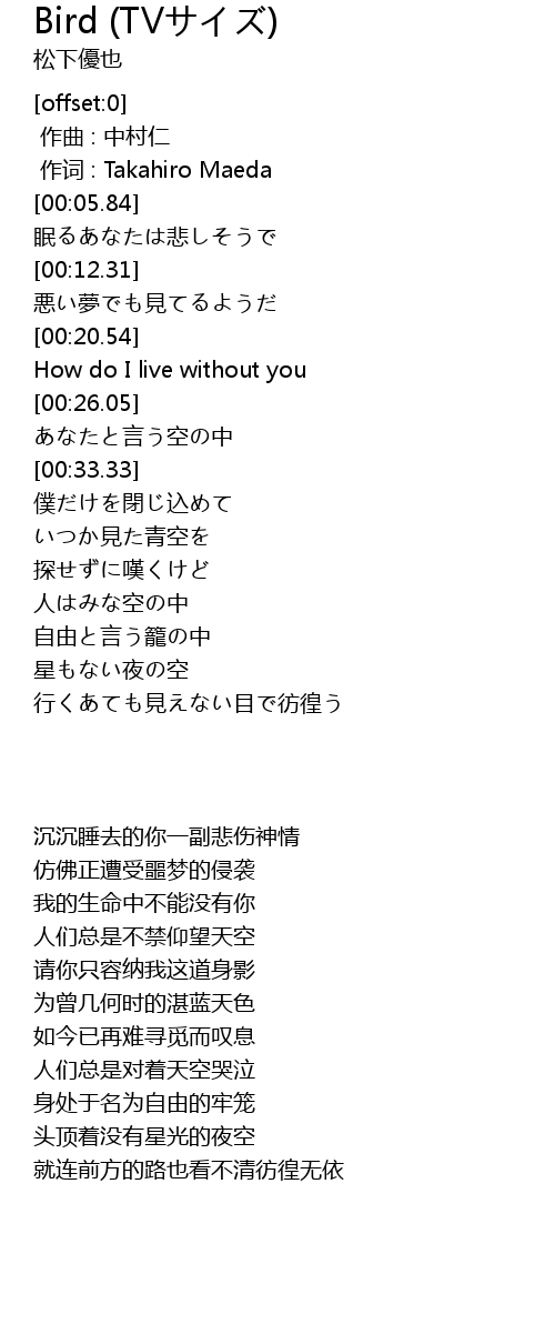 | [00:01.00] | 作词 : Takahiro Maeda |