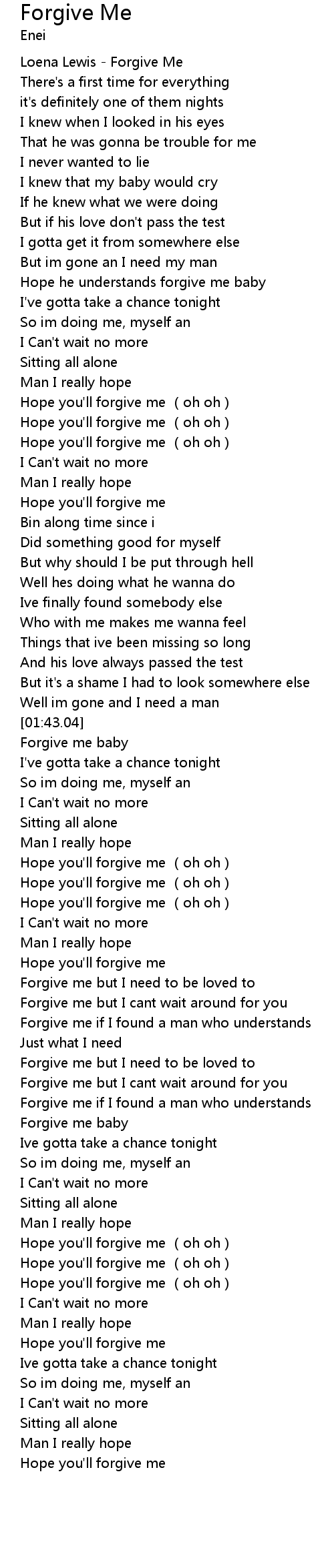 | [01:43.59] | Forgive me baby |