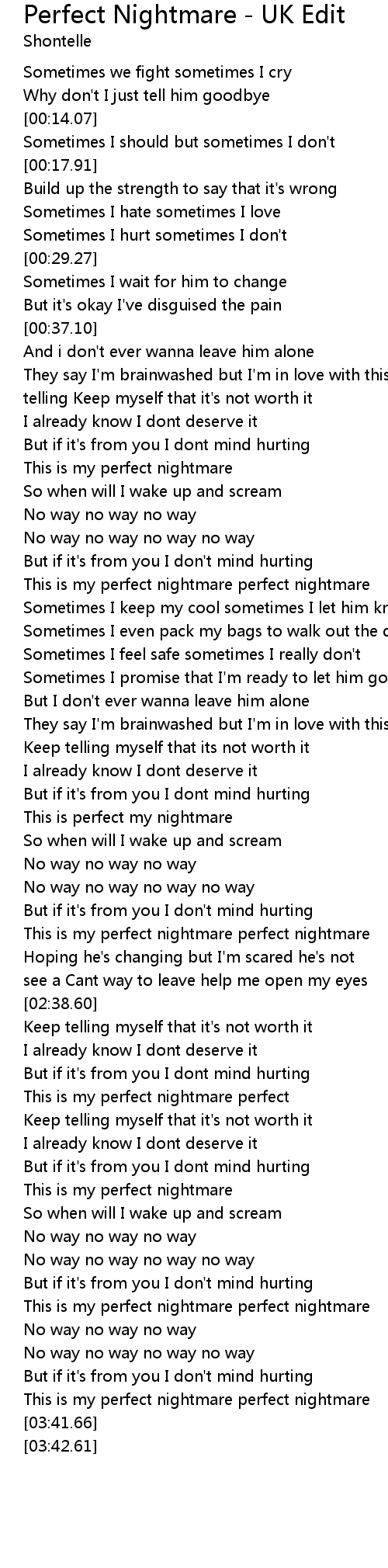 Perfect Nightmare - UK Edit Lyrics