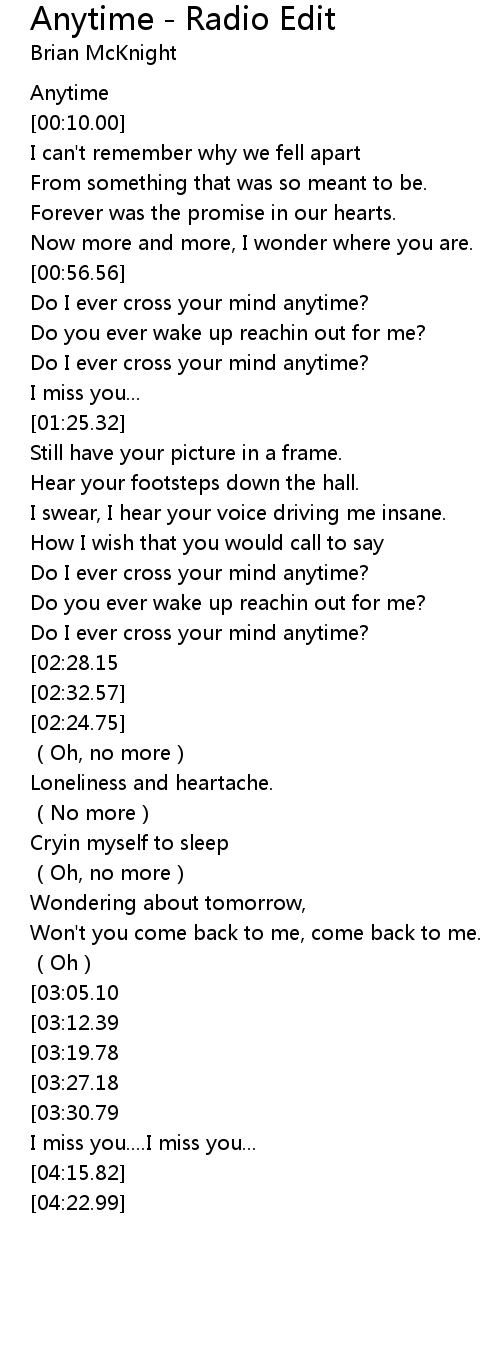 | [01:14.14] | Do I ever cross your mind anytime? |
