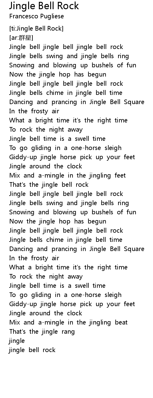 | [01:19.37] | Jingle bell jingle bell jingle bell rock |